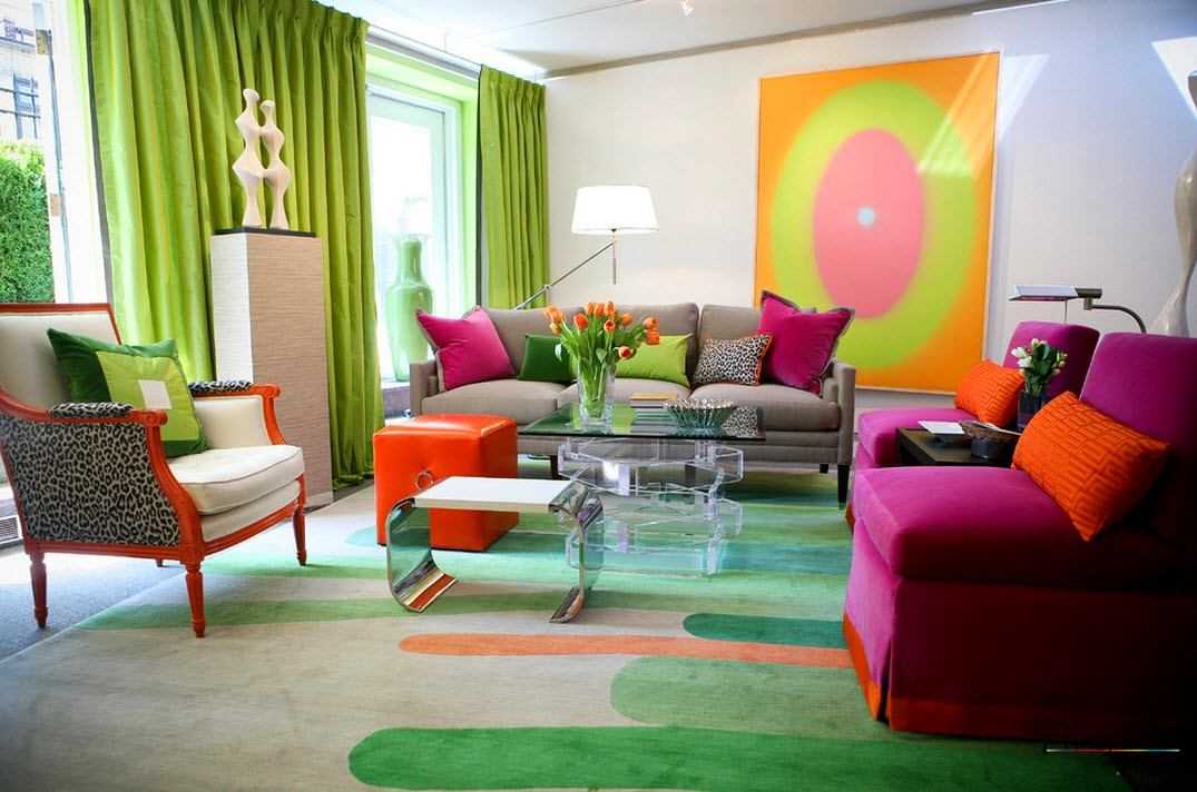 - В однотонном интерьере в светлой гамме будут уместными 2-3 детали красного, желтого, лазурного или оранжевого цвета. Но только в одном оттенке!