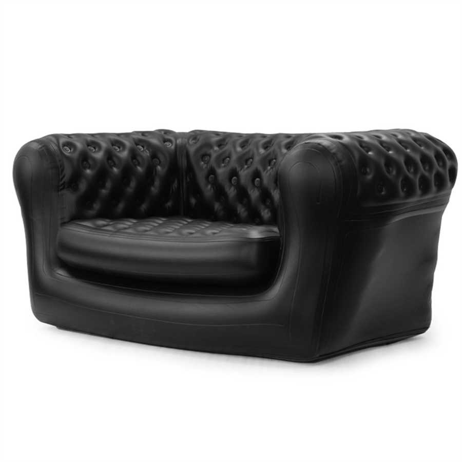 Начало изготовлению надувной мебели послужил запрос компаний, работающих в железнодорожной индустрии. Для удобства перевозки пассажиров создавались надувные матрасы. Так как ткань, а затем пластик себя не оправдали, так как первые плохо держали воздух, а вторые были ненадежны, инженеры старались создать прочный и достаточно безопасный материал. Таким качеством обладал поливинилхлорид, изобретенный в 1993 году. С тех пор популярность надувных моделей стала расти, так как данные изделия были дешевле деревянных и не требовали усилий для переноски, тем более, поднимания по лестнице.