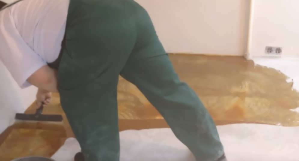 Но важно соблюдать максимальный интервал между соседними участками – не более 10 минут. Чтобы избежать преждевременного высыхания пола лучше будет привлечь помощника в работу