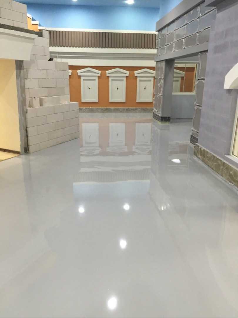 - Эпоксидные смеси. В настоящее время эти изделия используются преимущественно для жилых помещений, хотя их промышленное значение достаточно велико. Отличаются хорошей износостойкостью. Особенно выделяются прозрачные растворы, которые позволяют получать необычные дизайнерские решения. Такой эффект достигается за счет создания цветного слоя путем окрашивания или укладки рисунка.