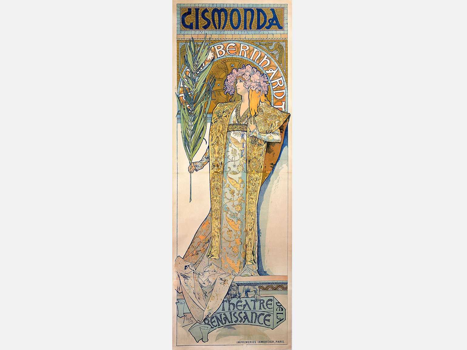4 января 1895 года на улицах Парижа появились афиши премьеры театральной постановки «Жисмонда», сделанные художником Альфонсом Мухой. Некоторые из этих плакатов висели недолго ― их забирали с собою впечатлённые горожане. Модерн перестал быть привилегированным стилем ― создаются такие предметы обихода, как вазы, гребни, броши, заколки и флаконы духов. Они доступны уже не только самым обеспеченным слоям населения, модерн начинает окружать людей повсюду.