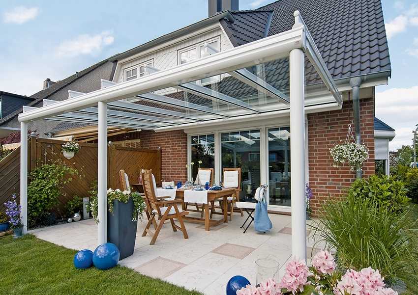 Как для навесов, установленных обособленно, так и для сооружений, примыкающих к дому, действует единое правило: конструкции должны сочетаться с существующими архитектурными формами и вписываться в общий ландшафтный дизайн. Пристроенные к дому навесы одной стороной опираются на стойки, а другой статично крепятся к стене дома, гаража или ограждения. Существует несколько видов каркасов для таких конструкций: