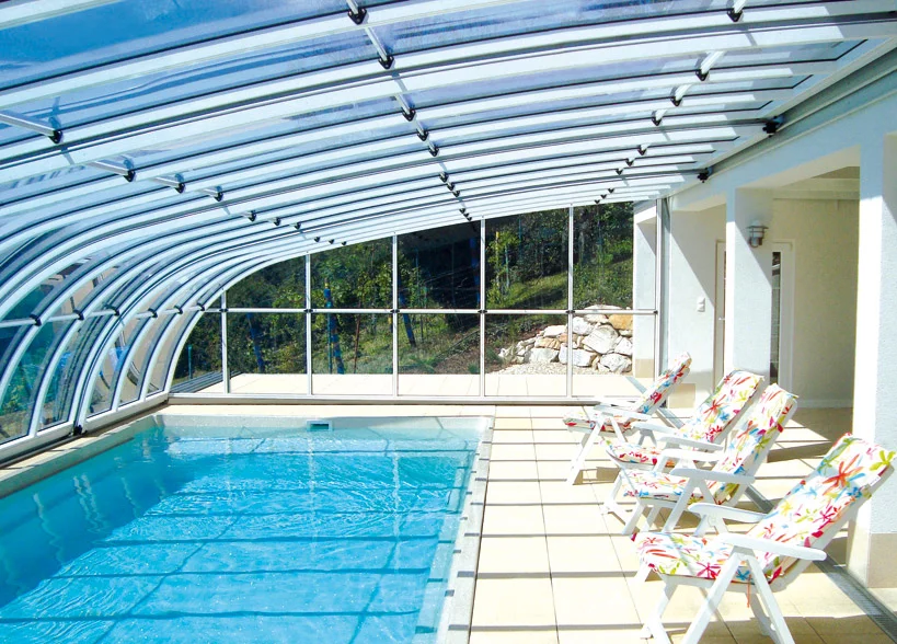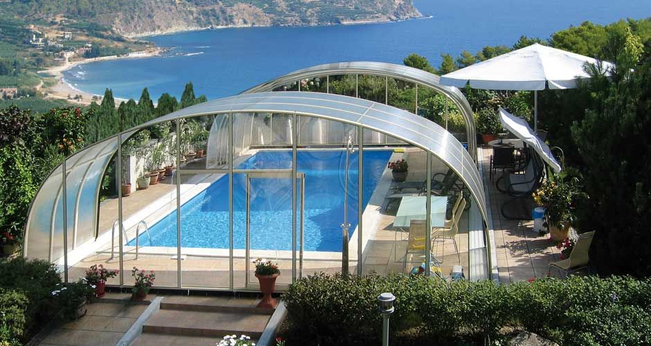 В случае если вам необходимо укрытие исключительно для бассейна, которое будет раздвигаться при необходимости, то вам будет по вкусу навес купольного типа.