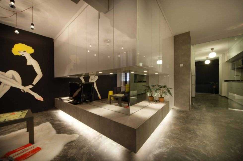 А кто сказал, что полоска должна быть прямой? 3D эффект или волнистая кривая может стать изюминкой минималистического интерьера, который, кстати, отлично подходит для спален и прихожих.