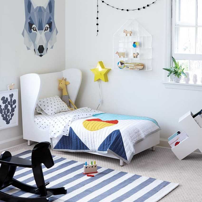 - Скандинавский — в оформлении наблюдается приятная сдержанность. Это может быть черная кованая кроватка или белая деревянная с покрывалом из меха. Отмечается контраст белого и черного, холодного и теплого.
