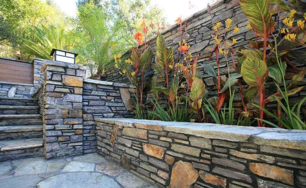 Пожалуй, самым надежным вариантом по праву можно назвать каменное ограждение. В отличии от остальных, данный вид не поддается воздействию природных факторов и поэтому может выполнять свою функцию в течении многих лет. Наиболее часто для создания таких ограждений используют кирпич, камни и тротуарную плитку. Выбирать материал стоит исходя из того, какого вида изделие вы планируете сделать.