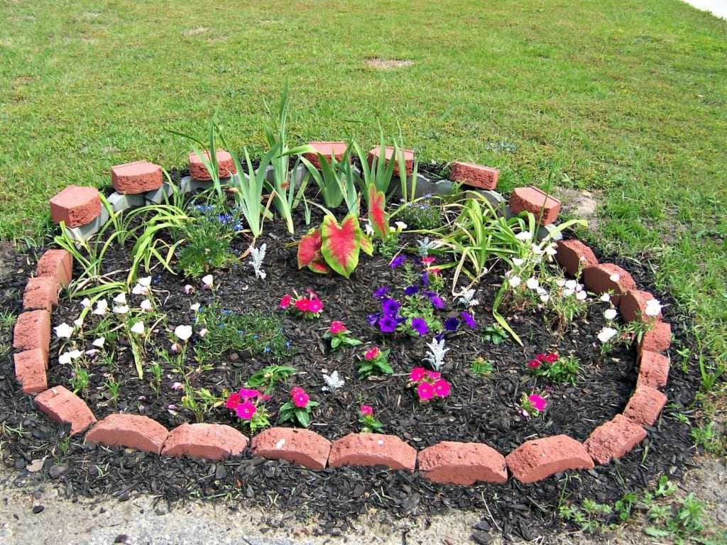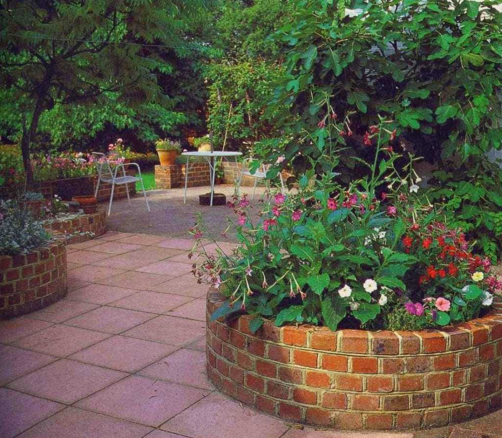 15. Чтобы придать участку объем, можно воспользоваться кирпичным обрамлением клумб. Просто великолепно получилось, не правда ли?