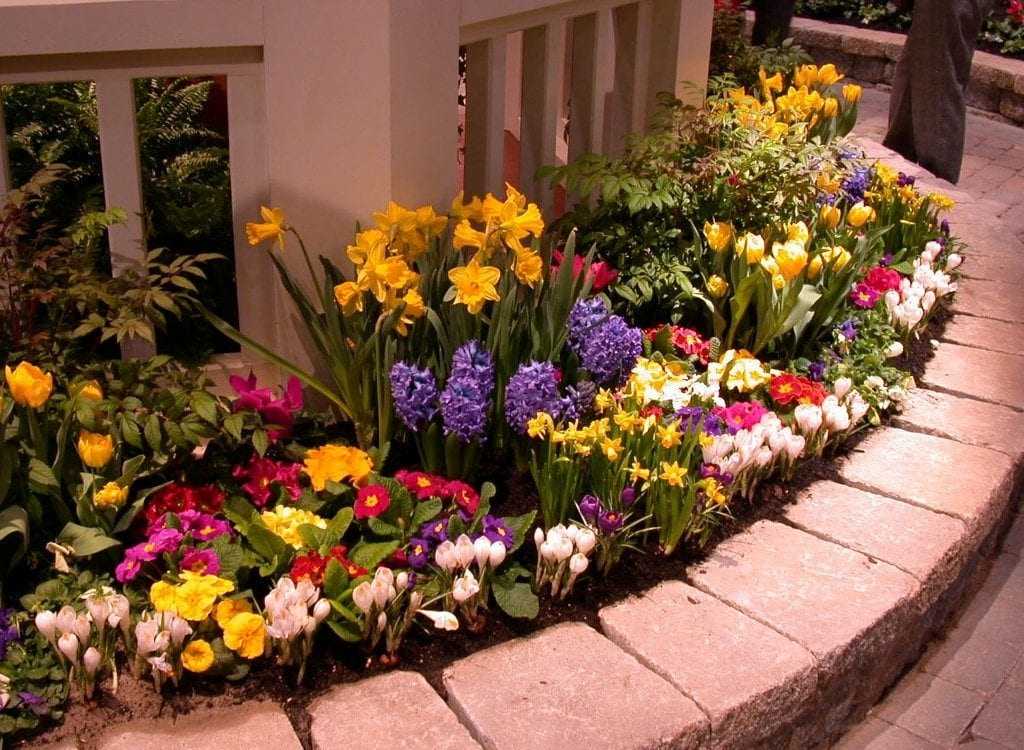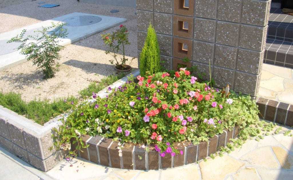 Если планируется строительство капитального цветника, то стоит позаботиться о надежном ограждении, например, кирпичном.