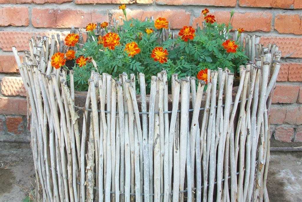 Еще один способ сделать красивое ограждение для клумбы из дерева – использовать ветки или лозу. Чаще всего такие изделия делают из ивы, вербы или березы. Подготовить их лучше в весенний период, но обязательно перед использованием необходимо вымочить в горячей воде. Такие ограждения подчеркивают деревенский стиль и при этом выглядят действительно красиво.
