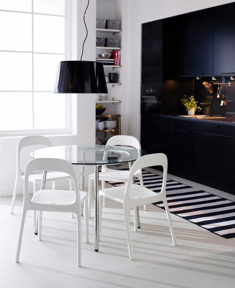 - Обеденные столики. Небольшой столик для завтрака ИКЕА позволит сэкономить свободное пространство в интерьере.