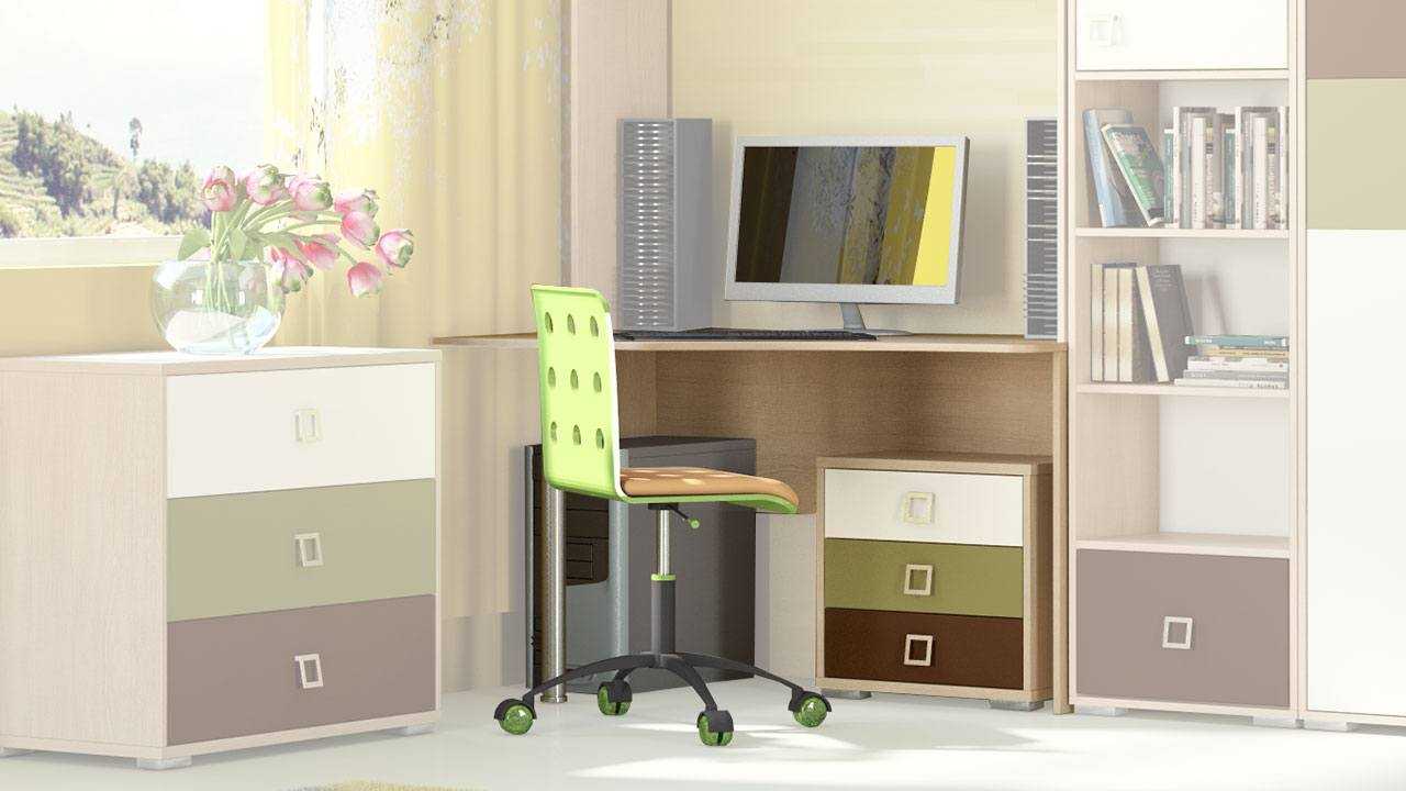 Конечно, есть выход из любого положения – например, приобрести в детскую комнату однотумбовый письменный стол, но над ним установить полочки для хранения книг, учебников. Отдельным видом в магазинах предлагают угловые письменные столы – неплохое решение для малогабаритных помещений. Как правило, в таких моделях предусмотрена только одна тумбочка, поэтому придется позаботиться о дополнительных местах хранения принадлежностей школьника.
