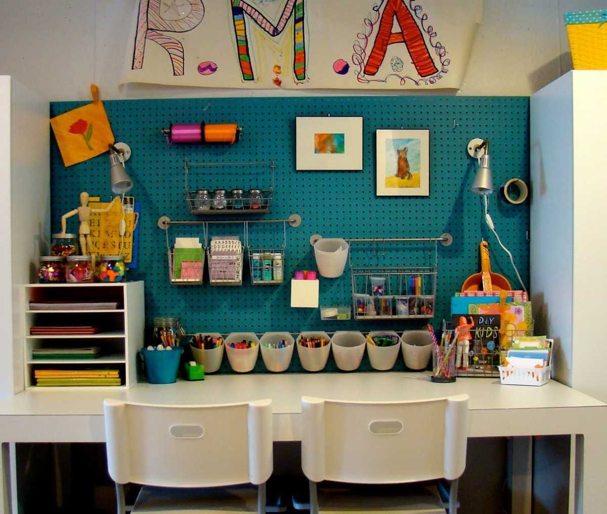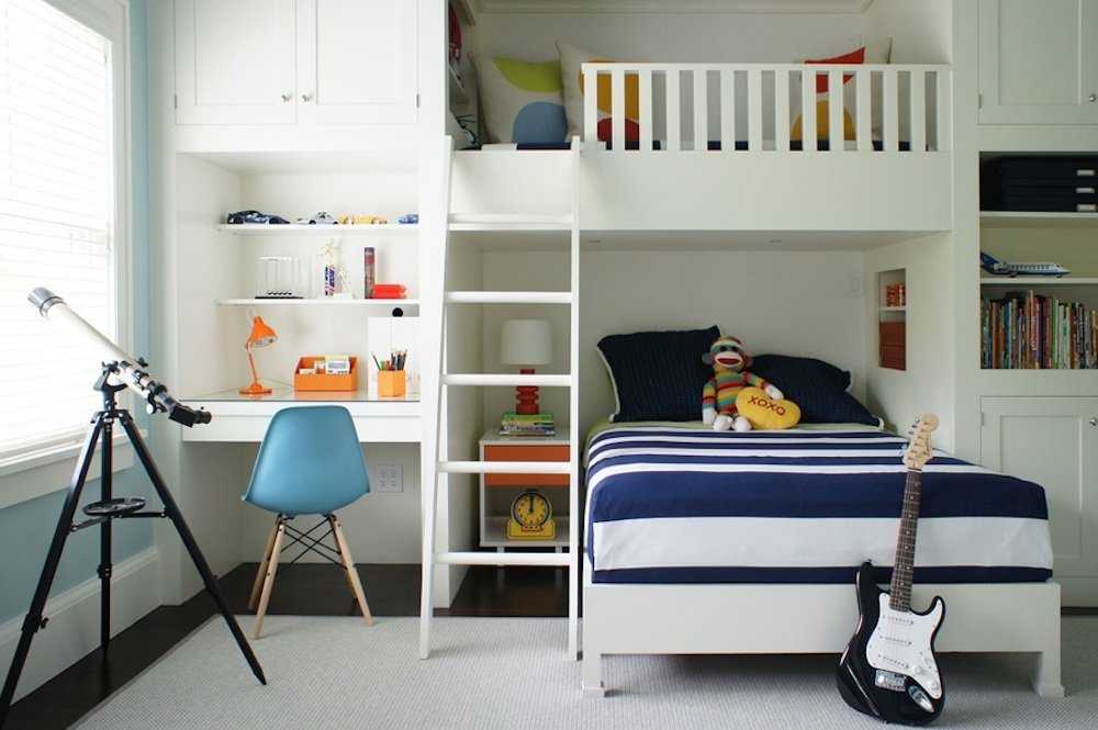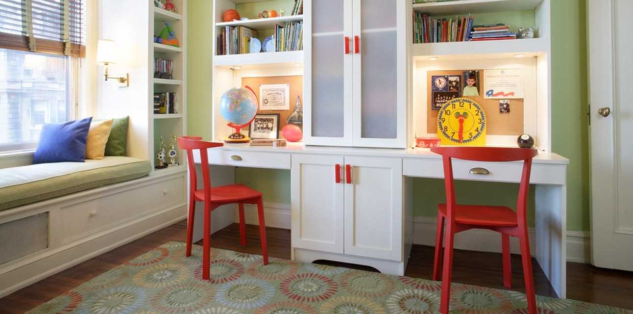 Полки над столом школьника: фото стильных детских комнат