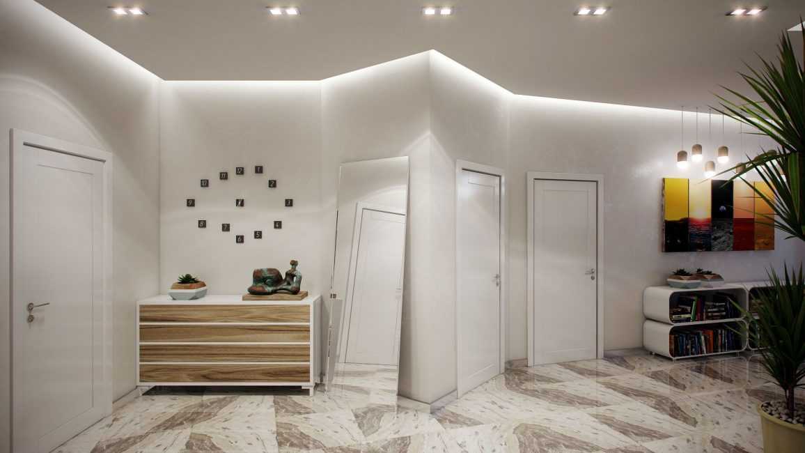 Организация такого освещения происходит за счет размещения светодиодной ленты в специальном пазу. В зависимости от места расположения паза (сверху, снизу) может создаваться различный эффект:
