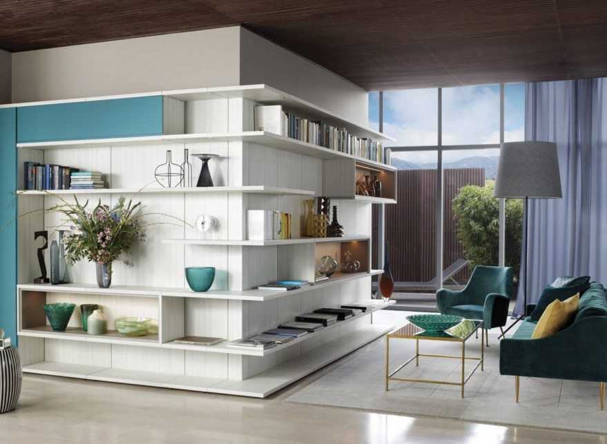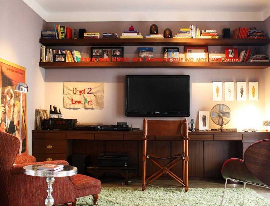 - Если площадь вашей комнаты позволяет вам использовать больше места, то здесь отлично подойдут стеллажи.