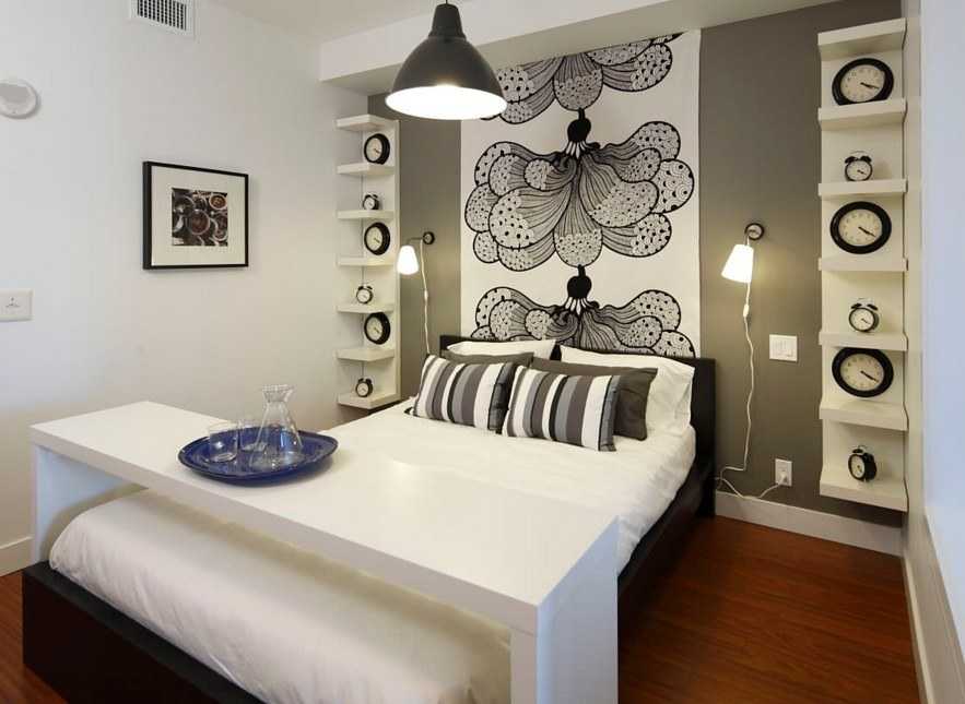 - Полка-стол, название говорит само за себя, может принимать два вида: собственно стол и полку. Это отличный вариант для небольшой комнаты.