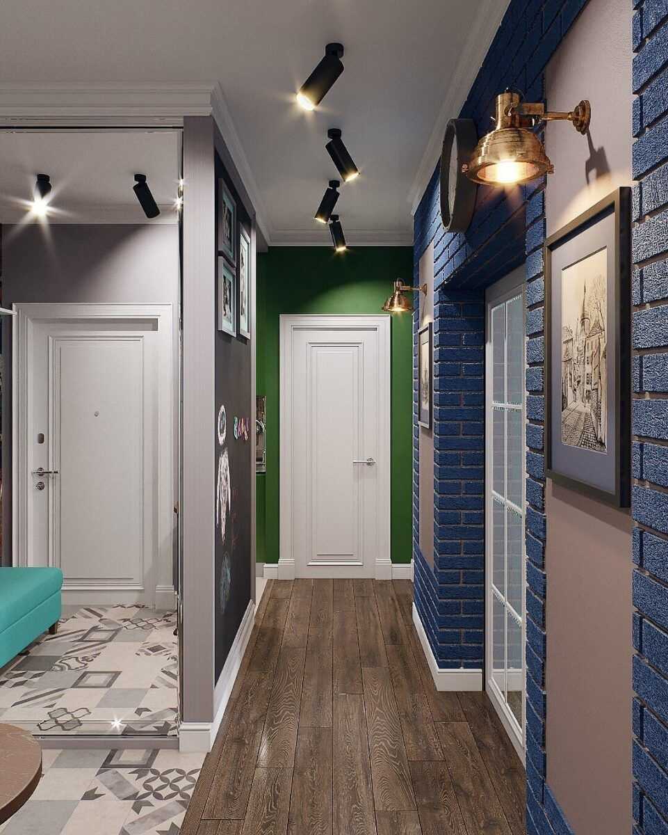 Возможно комбинировать старинные элементы с современными. Например, в коридоре отлично сочетается кирпичная стена с модной подсветкой.