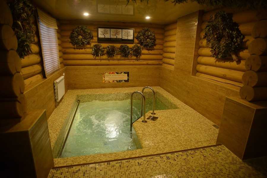 Если бюджет позволяет, то можно сделать баню с бассейном. Особенно востребованы такие проекты в тех случаях, когда рядом с участком нет водоема. Если площадь или бюджет не позволяют сделать бассейн, то можно поставить купель.