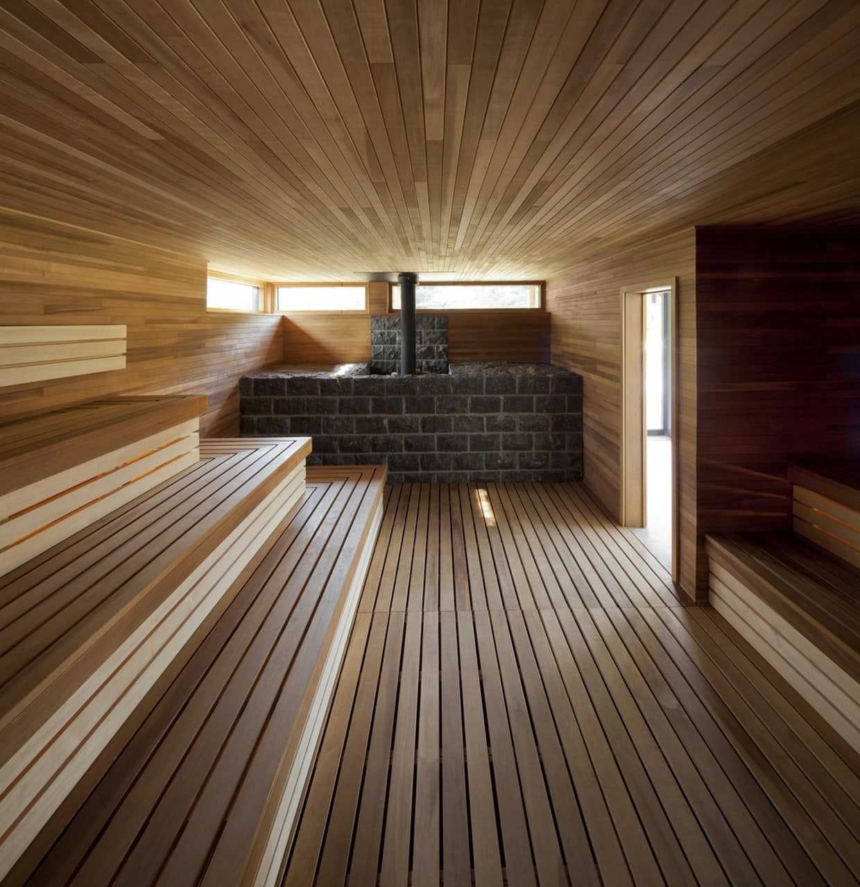 Классическая финская баня меньше русской. Ее проект предусматривает всего лишь два помещения – парную и многофункциональную комнату (раздевалка, помещение для отдыха, совмещенное с душем). Потолок высотой 200-250 см предполагает установку параллельных полок – для сидения и лежания.