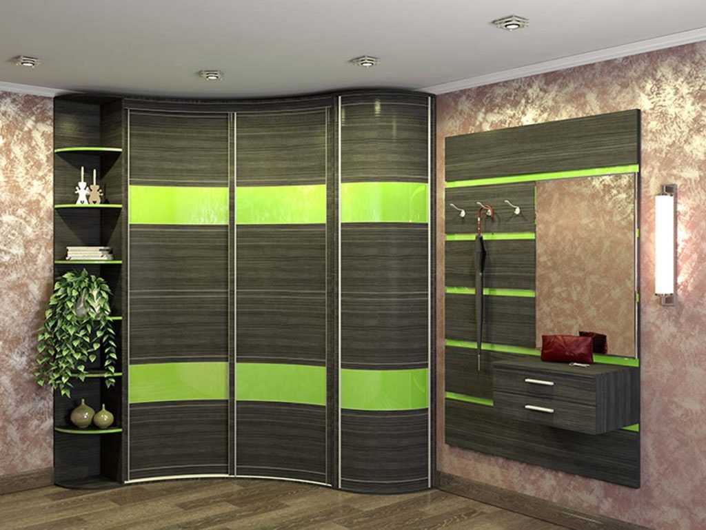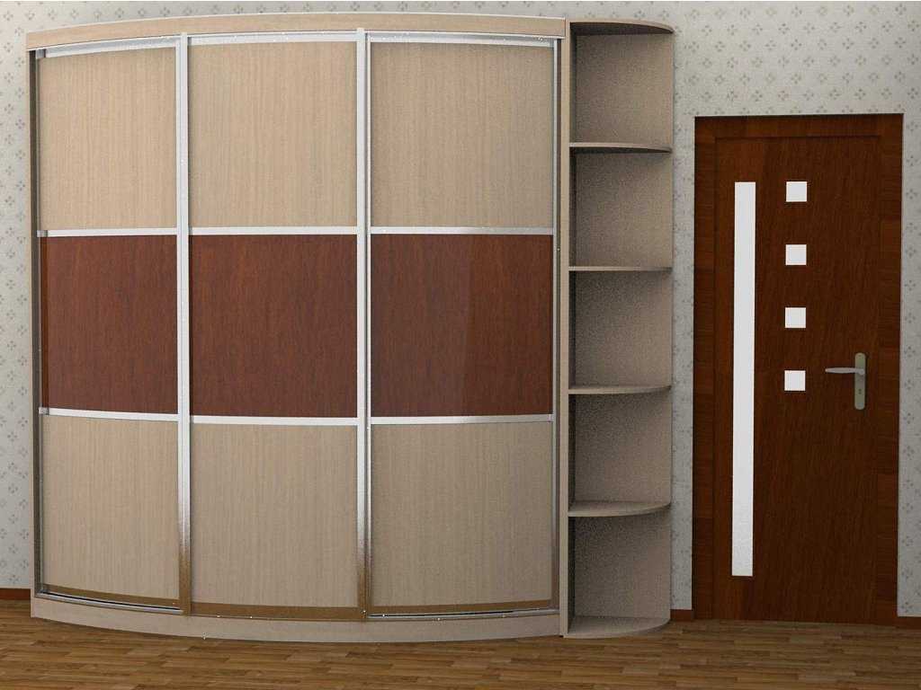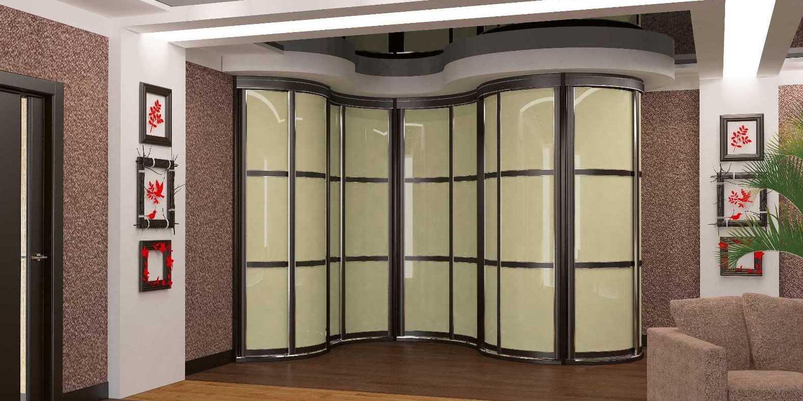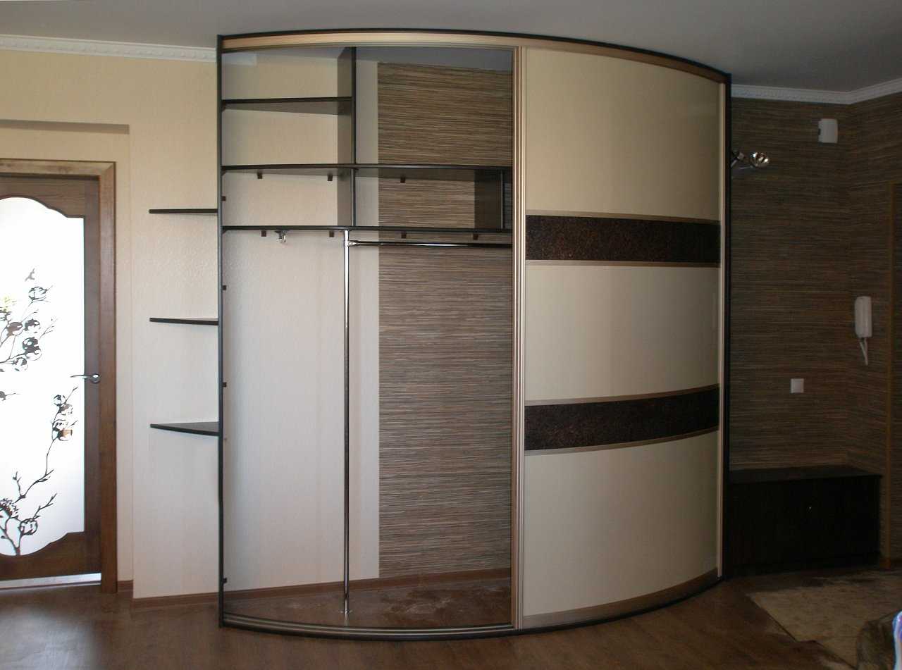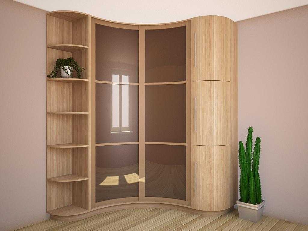 Современным и оригинальным решением угловой мебели является радиусный шкаф вогнутый, который совмещает стиль, вместительность, и оптимальное размещение. Также угловые шкафы бывают выпуклыми и комбинированными (с наружным и вогнутым изгибом).
