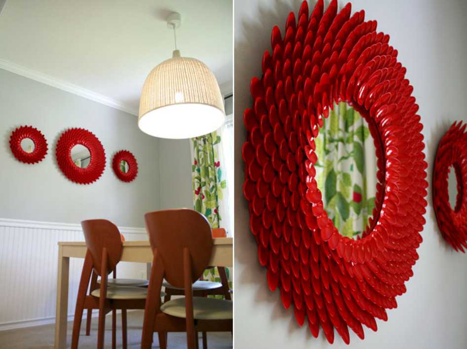 Оригинальные предметы декора нужны не только в комнате или гостиной, но и кухне. К примеру, зеркало в раме из столовых приборов смотрится весьма оригинально