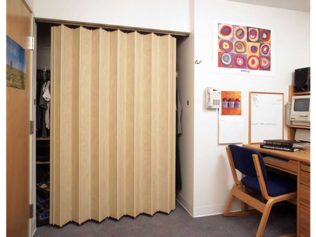 Раздвижно-складная конструкция напоминает книгу или гармошку: при открытии створка не перемещается вдоль вертикальной поверхности, а отходит в сторону. Различают одностворчатые и двустворчатые модели. Одно полотно образуют 2 и более вертикальных секций, которые соединены между собой шарнирным креплением.