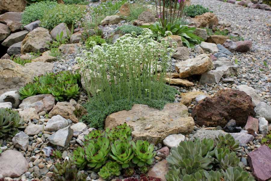 Подбирая растения, важно помнить, что рокарий – это сад камней, а растения лишь придают ему жизни и декоративности.