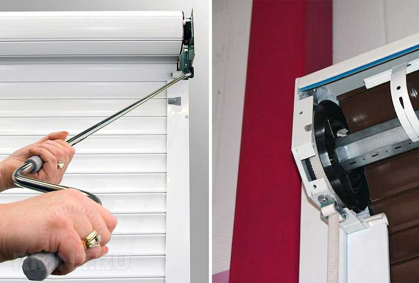 Привычный многим ручной способ открывания и закрывания рольставен поднятием полотна обеспечивается за счёт пружинного механизма сворачивания. Жёсткость пружины и её натяжение выбираются индивидуально под массу конкретного полотна. Это решение является стандартным для роллетных систем и им комплектуется практически каждый набор: пружина обеспечивает лёгкое перемещение полотна в любом положении.