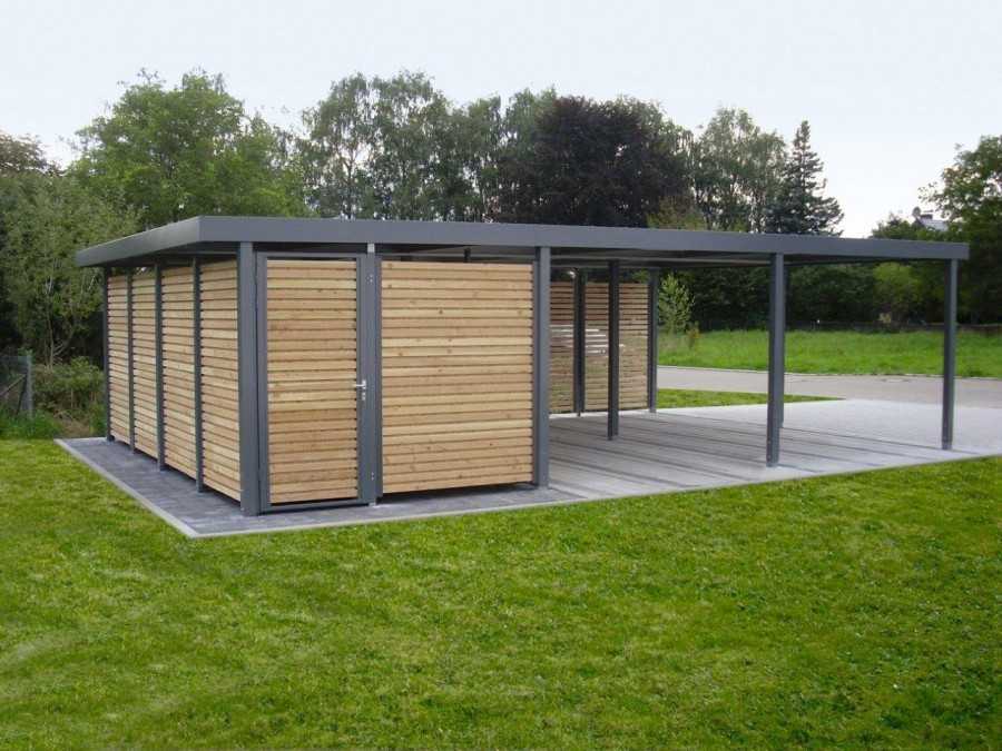 По внешнему виду они могут напоминать гараж с тем отличием, что вместо ворот устанавливаются двери. Достоинством такого способа производства является произвольный выбор размеров постройки. Швеллеры и уголки используются в качестве опорной конструкции каркаса. Вспомогательные конструкции выполняются из металлической ленты, а в качестве внешней отделки применяют проф листы.