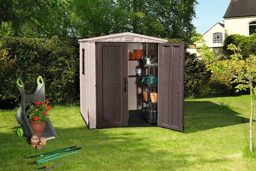 Самый простой способ – приобрести готовый хозблок, а после доставки собрать всю конструкцию на участке, установив ее на нужное место. Основных вариантов исполнения строений два – из пластика или металла.