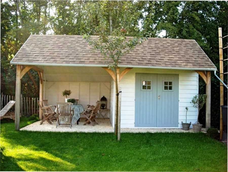 Отделка снаружи индивидуальна. Это может быть простое незаметное строение, уютный летний дом с площадкой для вечеринок или прекрасный сказочный домик с палисадником на радость детям – на усмотрение хозяев. Для вдохновения можно посмотреть фото сараев для дачи.