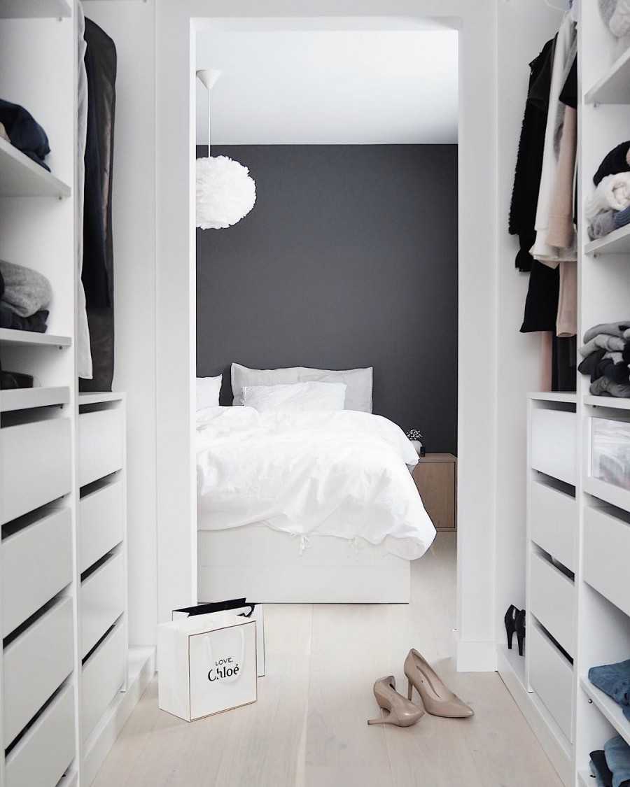 Спальня в силе эклектика с белым шкафом-гардеробом PAX Источник ikea.com