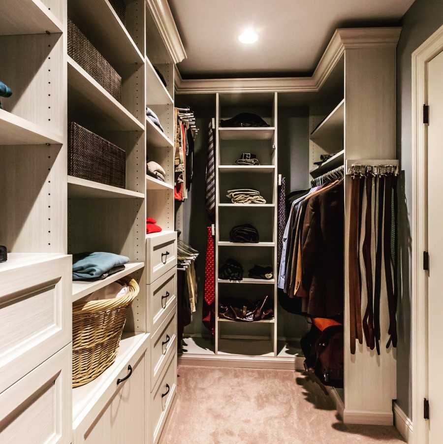 Существуют несколько типов планировки угловой гардеробной, среди которых: