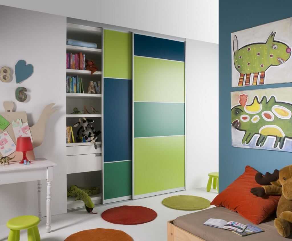 цветовое решение. Для детской лучше всего подойдет мебель с различными яркими акцентами. Это поможет придать комнате красок, а также правильно организовать систему хранения. Полки могут быть окрашены в разные цвета, на ручках – изображения животных.