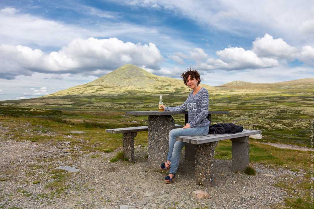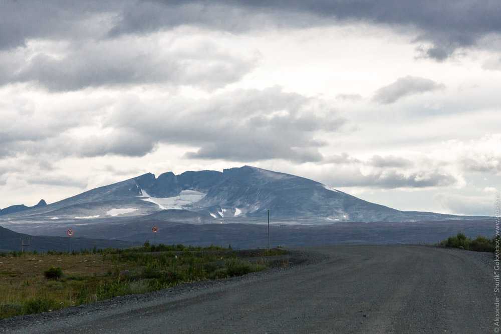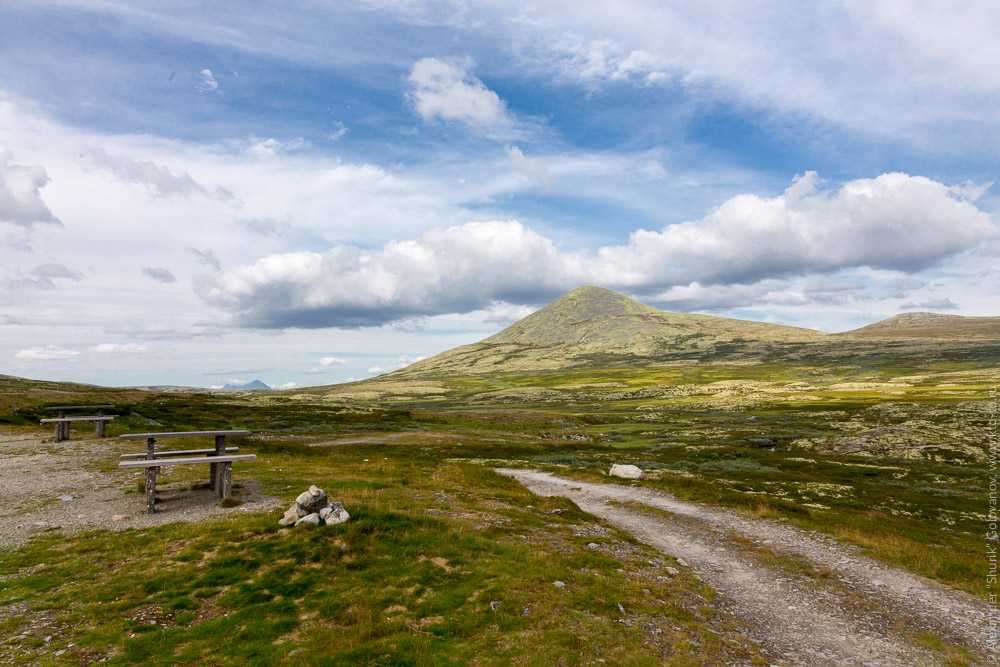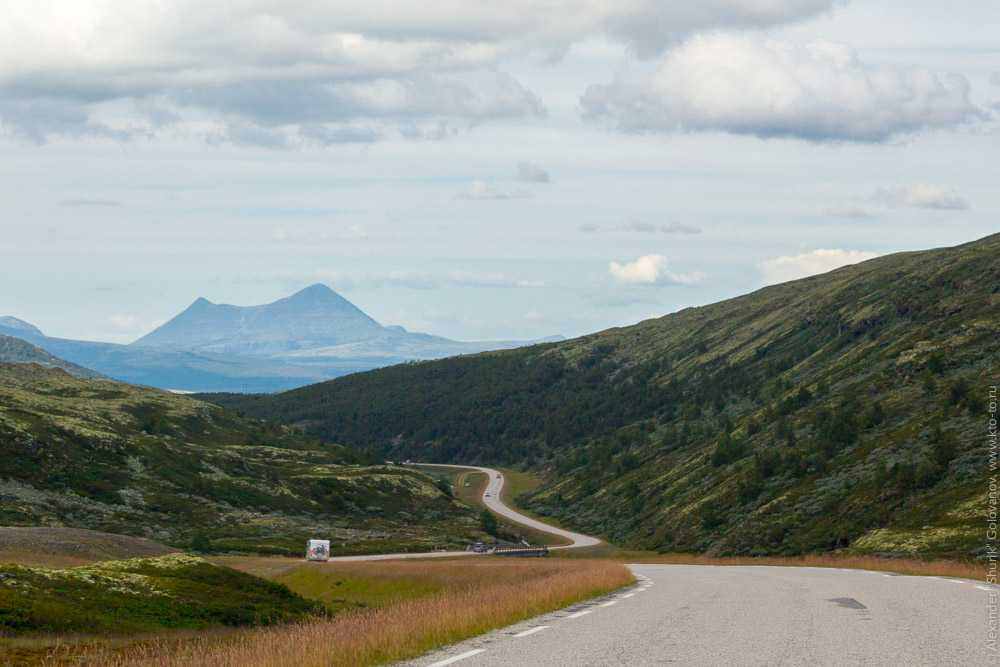 А по дороге заезжаем на ещё одну смотровую: с неё открывается вид на гору Снохетта. Путь лежит по грунтовке мимо военной базы.