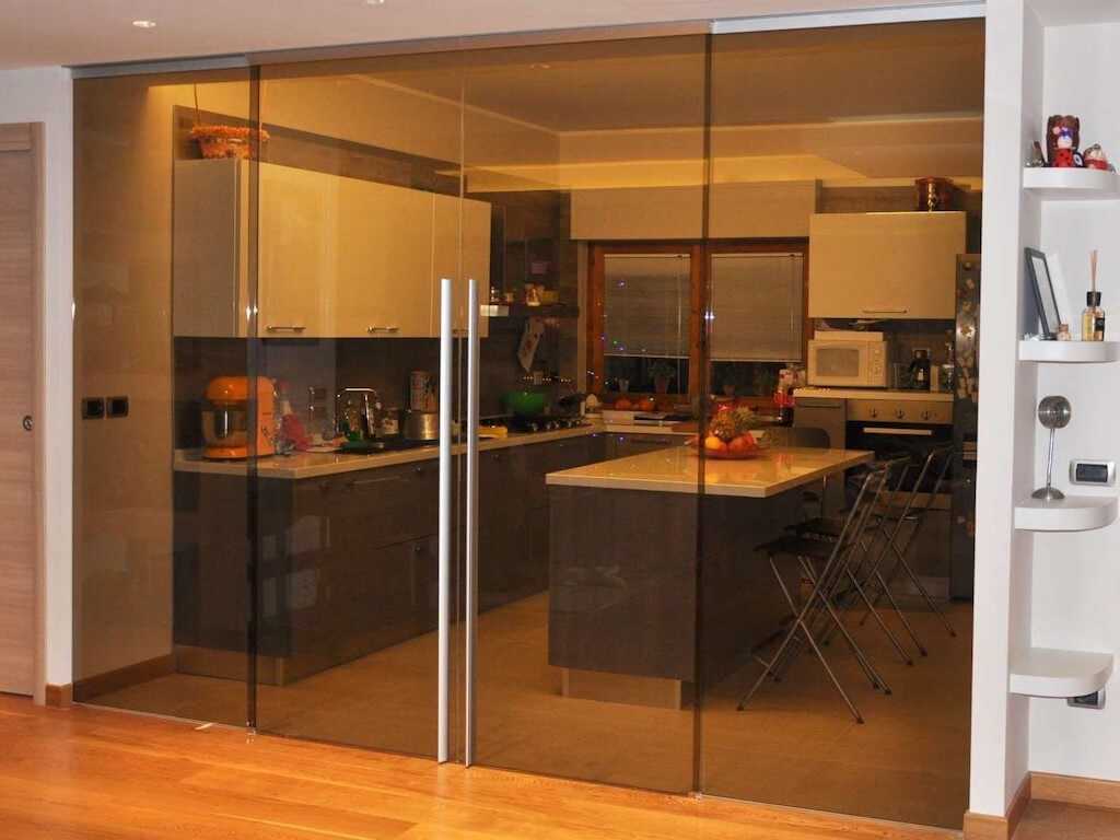 Стеклянную перегородку нежелательно устанавливать между гостиной и кухней, так как часть запахов будет переноситься в жилую часть квартиры, если к этому быть готовым, то можно смело ставить.