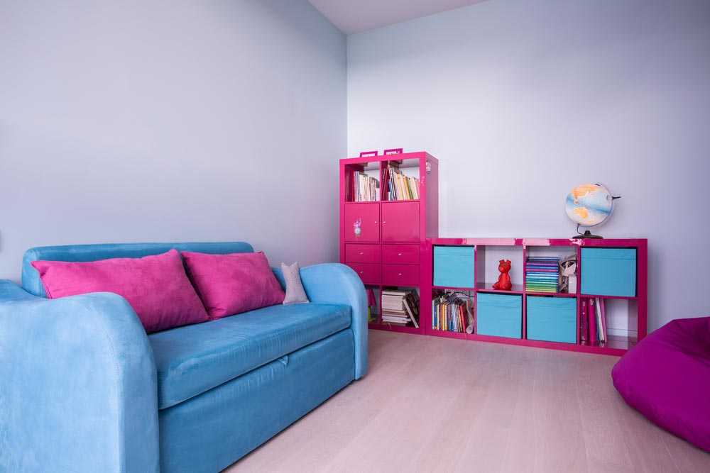 Можно подобрать любую расцветку мебели. Главное, чтобы оно подходила под выбранный стиль и дизайн комнаты. Благодаря этому, стеллаж растворится в пространстве детской комнаты и сможет полностью гармонировать с остальной мебелью и текстилем.