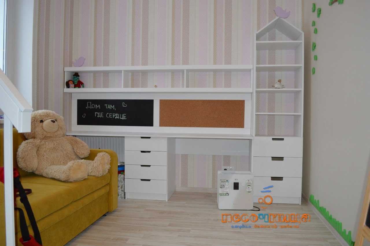Производители предлагают альтернативный вариант для всех возрастов – стеллаж в комплекте с рабочим столом. Для детей дошкольного возраста на полки можно будет ставить игрушки и наборы для творчества. У школьников ящички и полки будут занимать учебники, книги, тетради и другие школьные принадлежности.