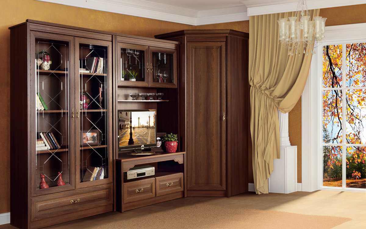 Классическая мебель не выходит из моды на протяжении десятилетий. Стенки для гостиных оформляются элементами барокко и рококо, отличаются массивностью шкафов, изысканностью резьбы, утонченностью фурнитуры. Дверцы открытых посудных витрин изготавливаются из стекла, что добавляет изящества всей системе. Каждый предмет выполняет свою функцию, гармонирует с другими. Производители выпускают классические стенки для зала с учетом представлений о классике и вкусов потребителей: классику историческую и ее современный аналог.