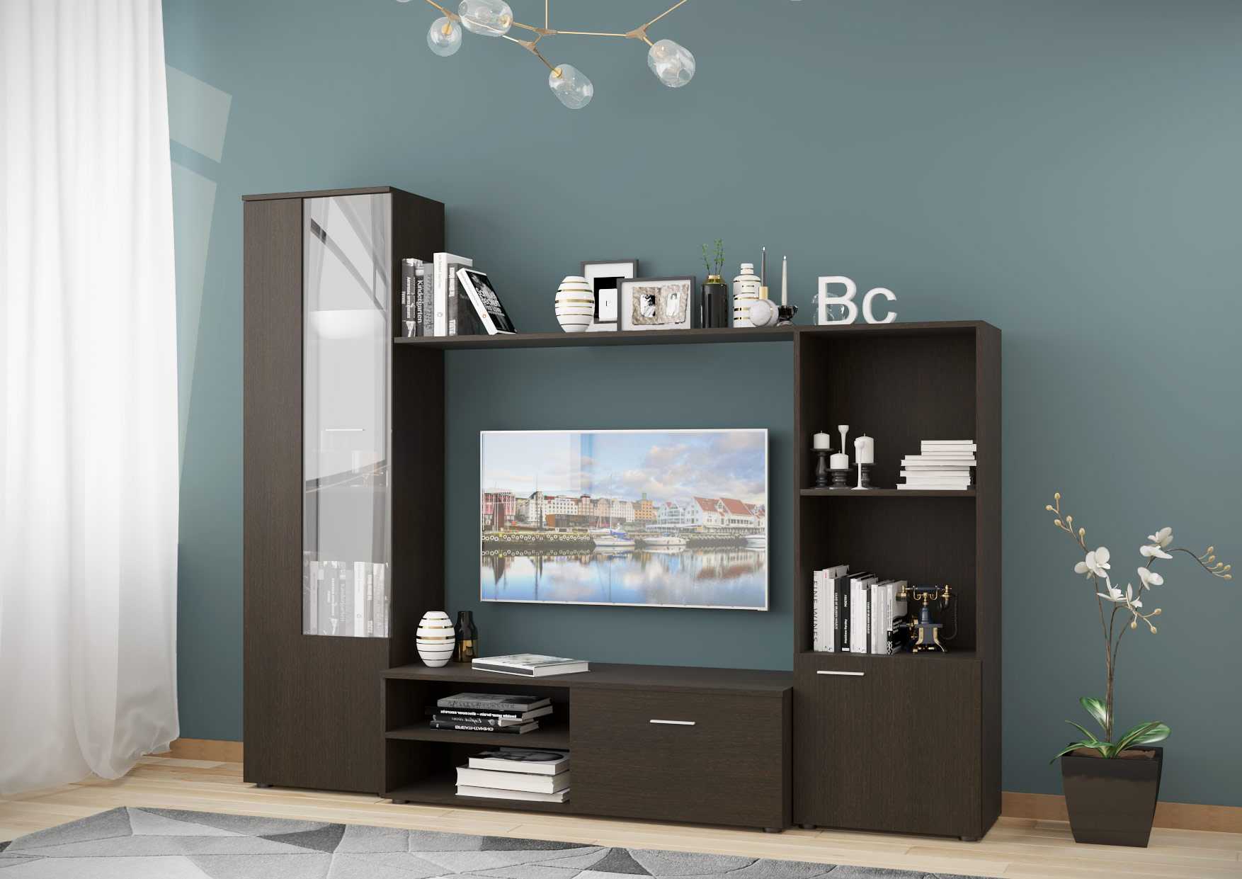 - мини-стенка функциональна, так как можно выбрать именно те модули, что необходимы, и составить из них нужную конструкцию;