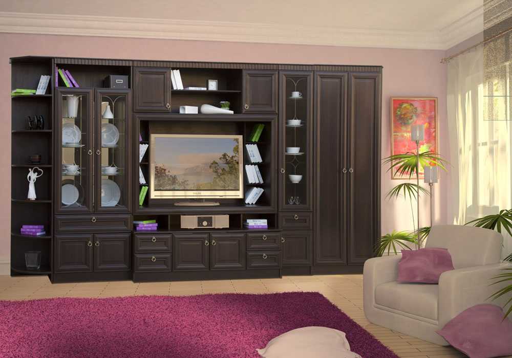 - Отправляясь за покупкой стенки, нужно иметь представление об общем стиле обстановки в гостиной. Даже если она будет доминирующей, ей в поддержку придется подбирать текстиль, люстру и даже мягкую группу.
