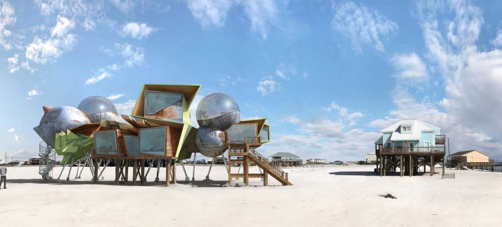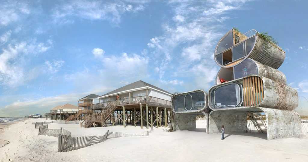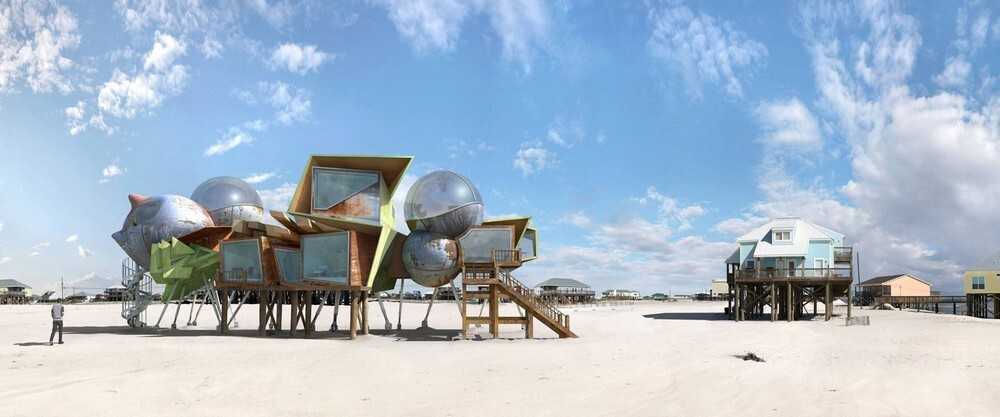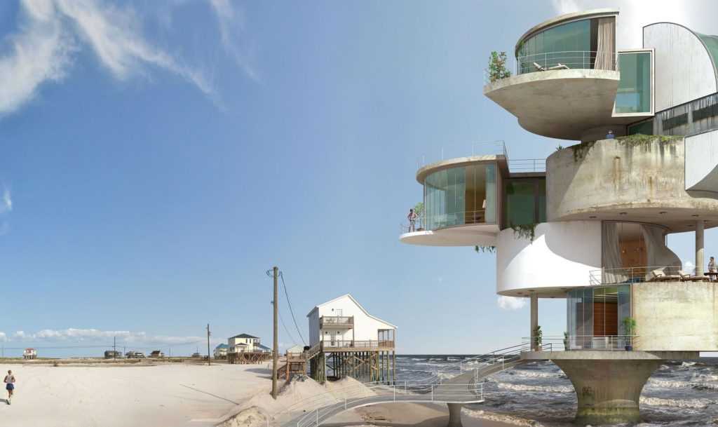 Проникнувшись сложной жизнью людей на Дофин-Айленде, расположенном на островной косе штата Алабама, Дионисио Гонсалес создал удивительную визуализацию, которую назвал так же – Dauphin Island. В рамках этого концепта он разработал фантастические дома будущего, которые станут настоящей крепостью для жителей региона, выживающих в сложных климатических условиях, ведь эта зона славится своими разрушительными ураганами.