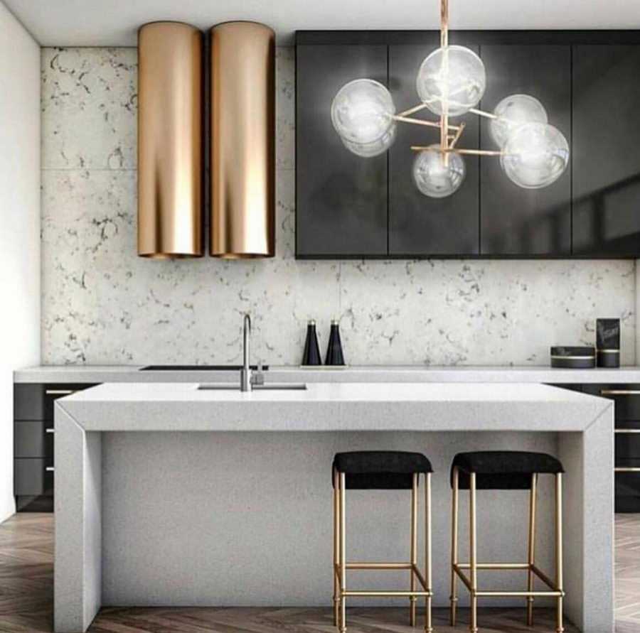 Черно-белые люстры на кухне