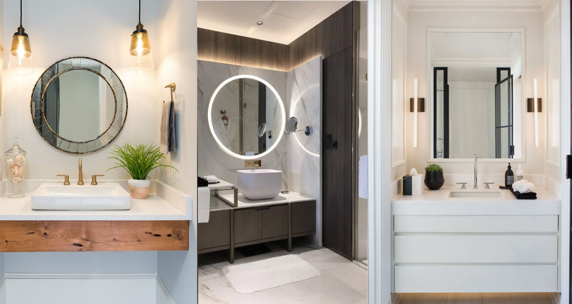 Если вы все-таки собираетесь использовать верхний свет, выберите более длинный горизонтальный светильник, который будет полностью освещать лицо и позволит комфортно осуществлять уход или накладывать макияж.