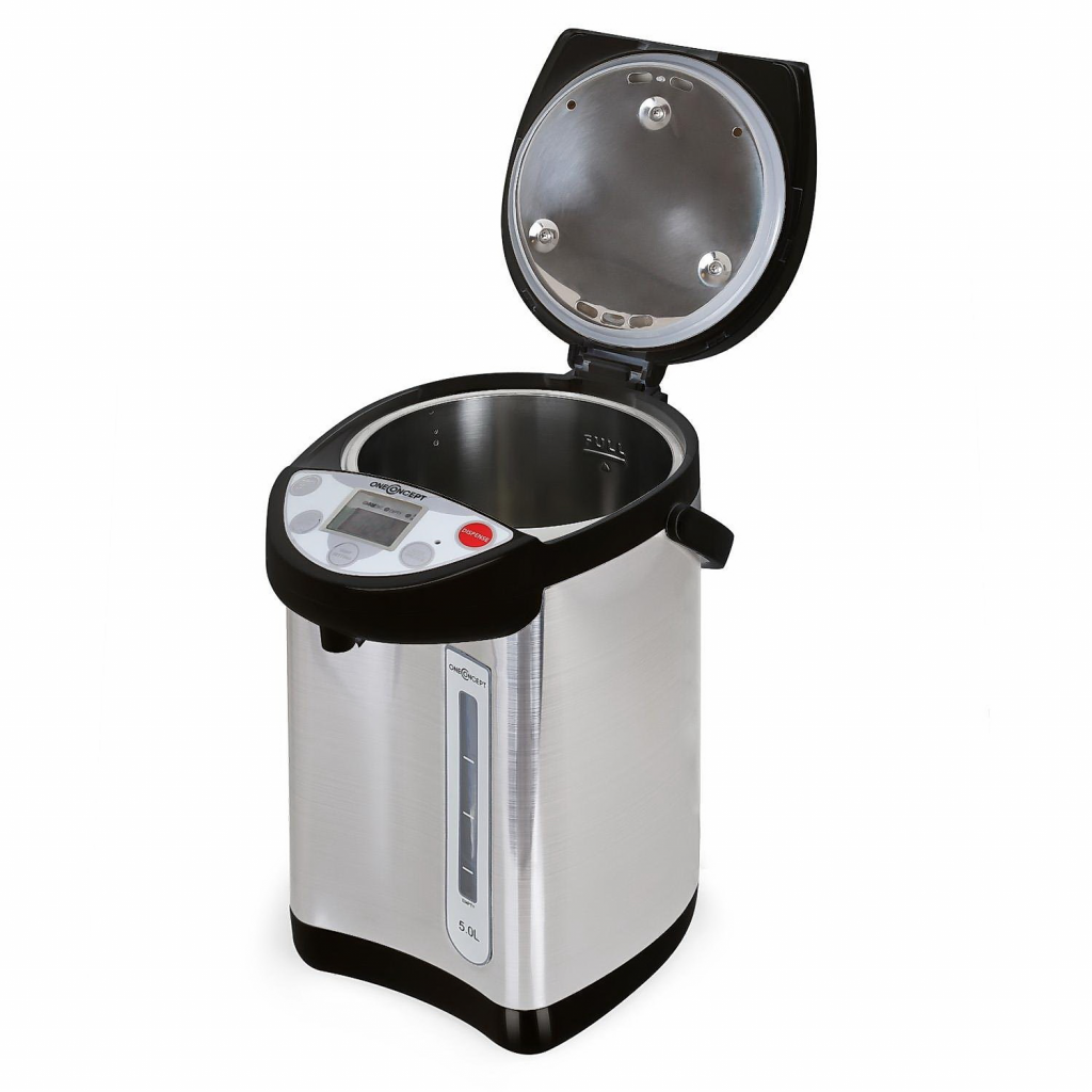 Практичная модель с легкостью вскипятит воду. Благодаря металлической колбе и корпусу с двумя стенками, жидкость остается горячей на протяжении длительного времени, как в термосе. Отличные теплоизоляционные свойства позволяют экономить электроэнергию. Жидкость в термопот подается при помощи наноса, электропомпы, нажатия на клапан.
