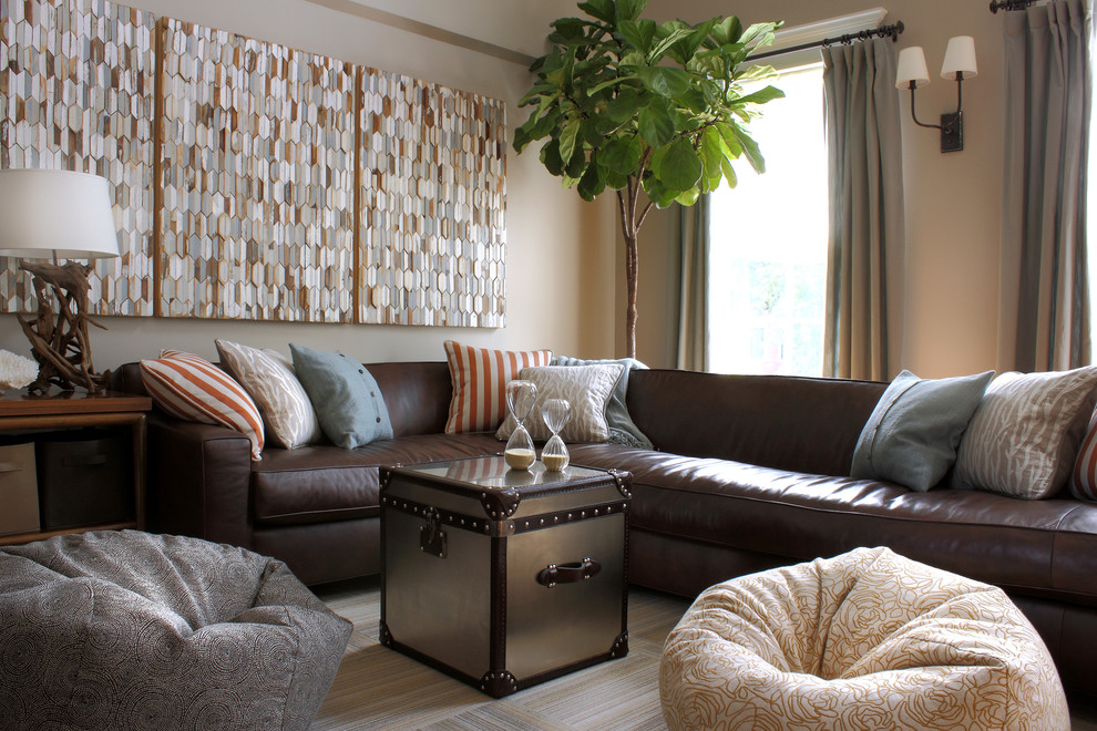 Если же интерьер создан с использованием натуральных материалов в этностиле, отлично подойдет кожаный диван. Он сразу сделает интерьер богаче и солиднее. Кожаный диван не только придает комнате статус и стиль, он может стать ярким центром гостиной, приковывая взгляды. До недавнего времени кожаная мебель считалась сугубо офисной и выполнялась в темных и мрачных цветах. Сегодня кожаный угловой диван можно выполнить в любом цвете и в разной фактуре.