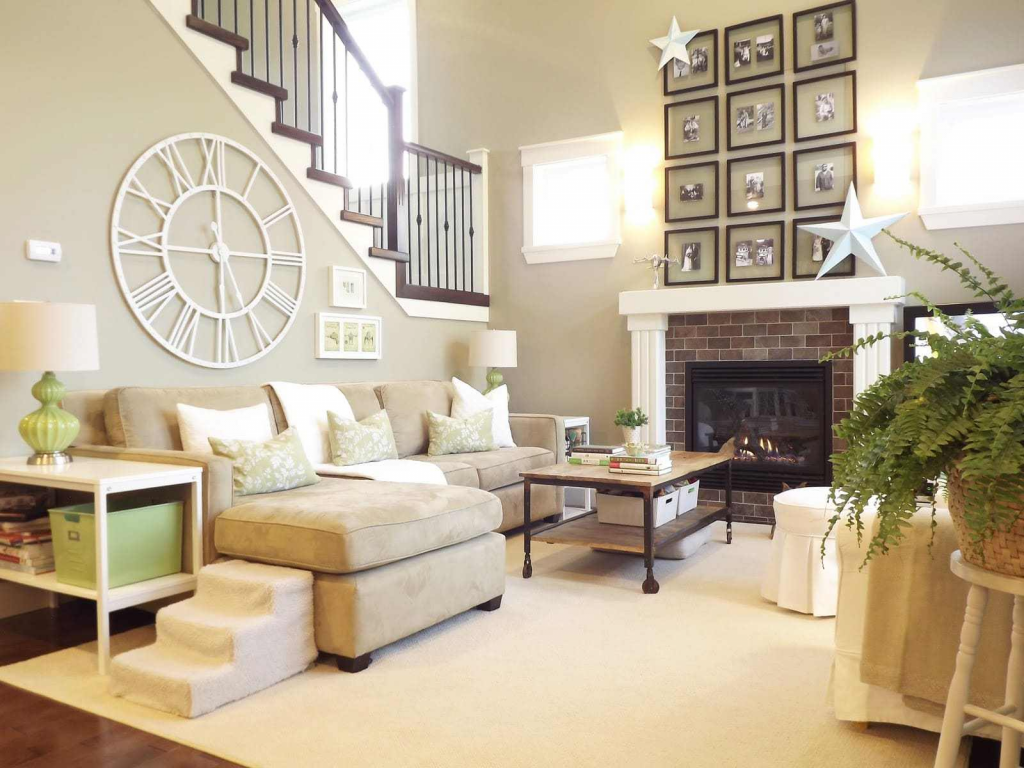 Диван по центру в интерьере гостиной комнатыИсточник links-stroy.ru