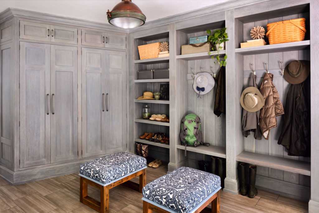Гардеробную в прихожей можно устроить в разных местах. Расположение будет зависеть от площади помещения его планировочных особенностей и дизайна, а также от размера самого гардероба.