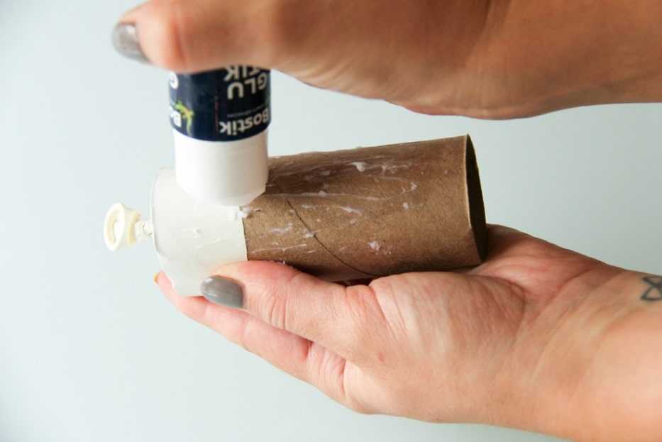 На всю поверхность втулки наносим клей и сверху закрепляем декоративную бумагу.