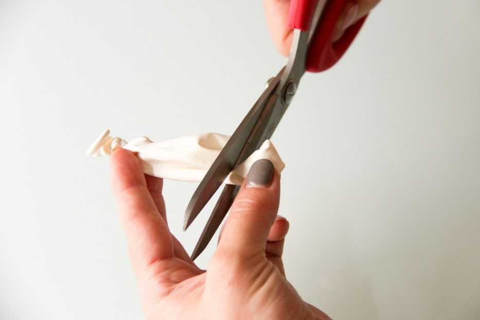 Аккуратно отрезаем верхнюю часть шарика таким образом, чтобы оставшуюся часть можно было надеть на хлопушку.