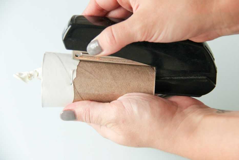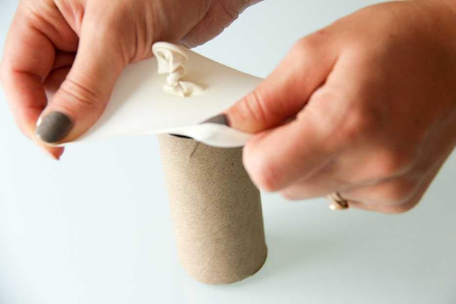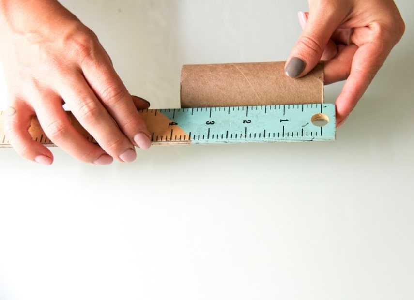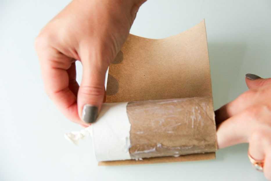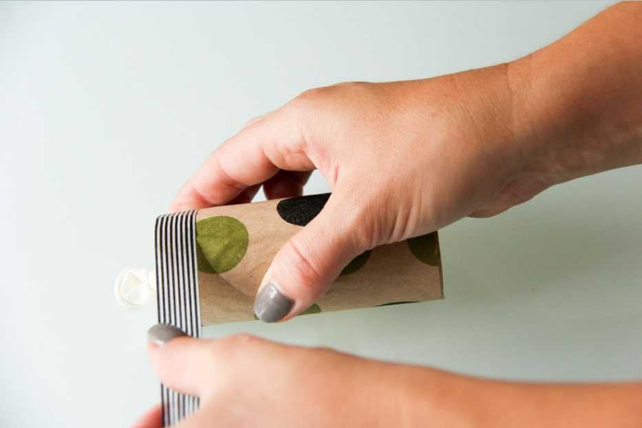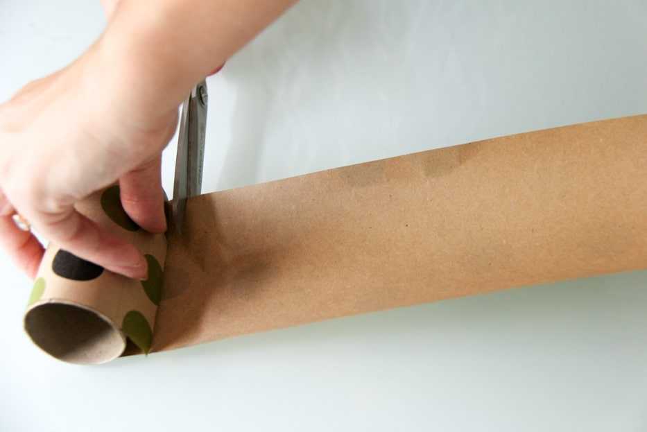 Оборачиваем втулку декоративной бумагой и отрезаем ненужный край.